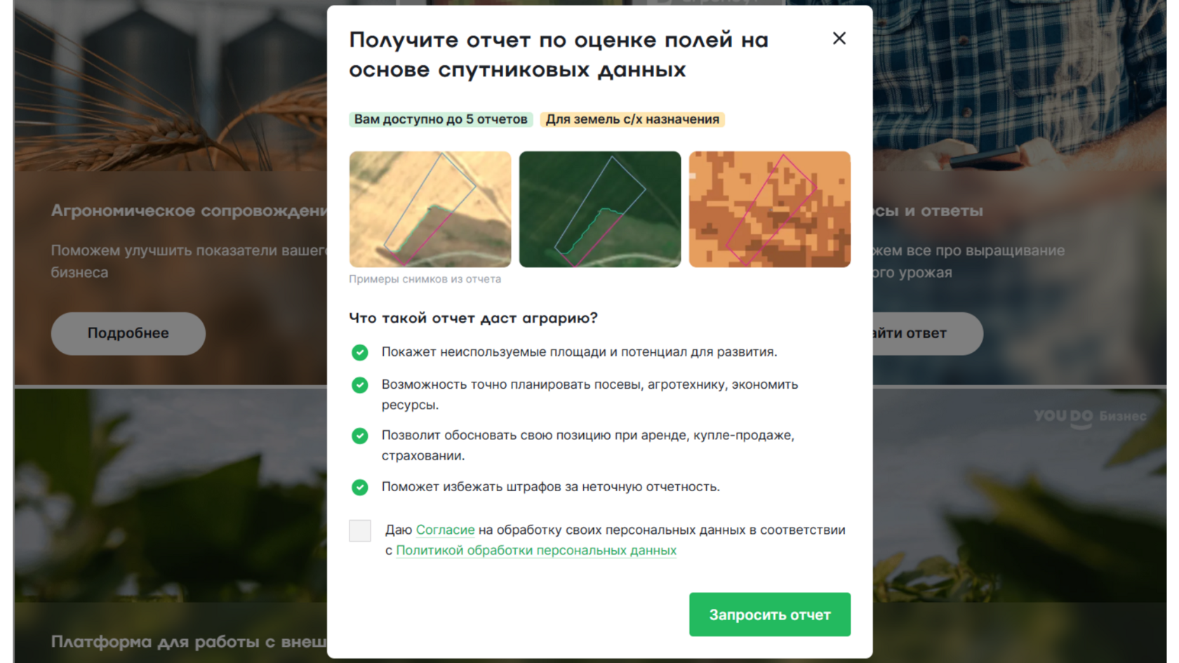 Отчёты по оценке полей на основе спутниковых данных на платформе поле.рф